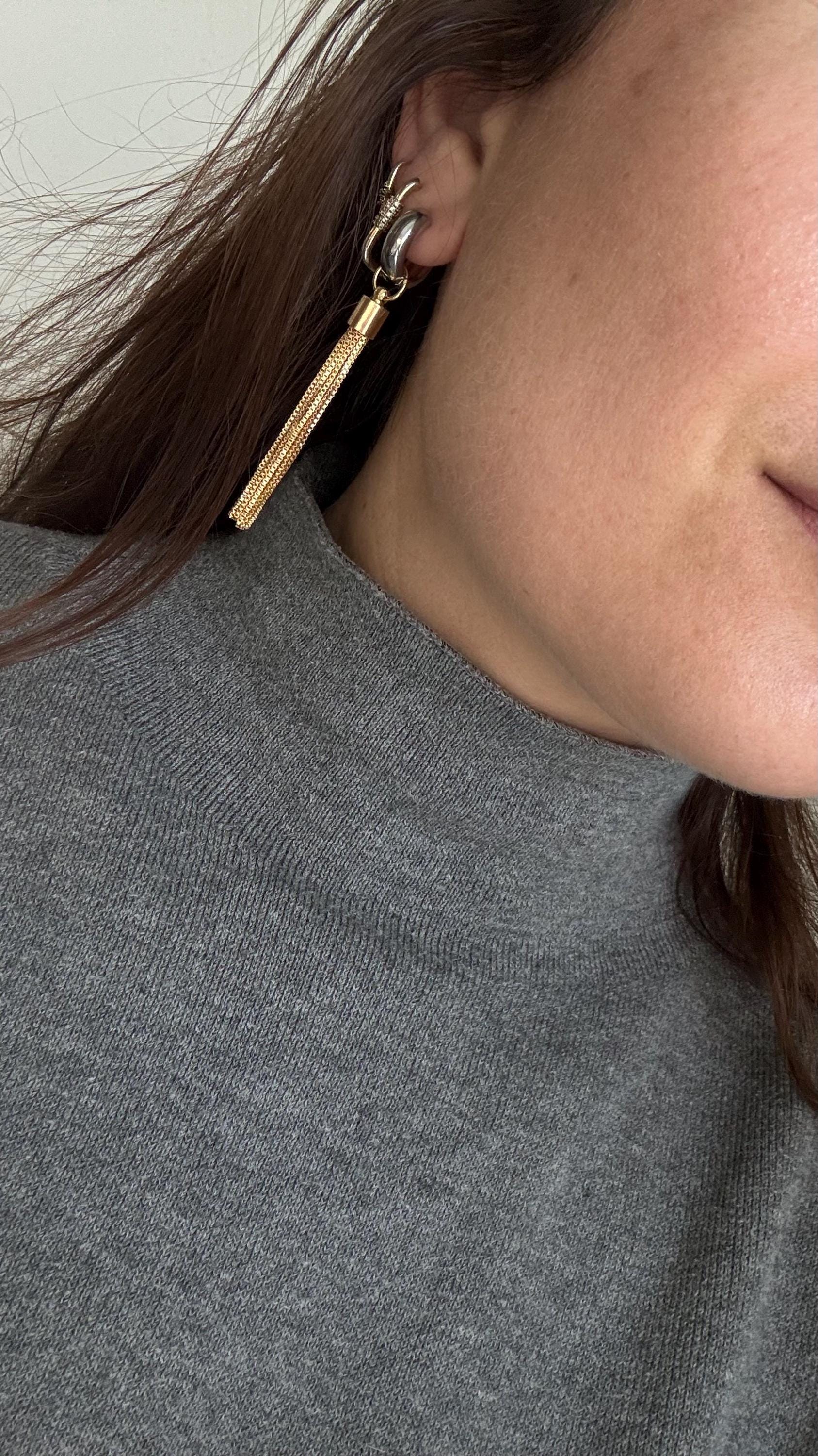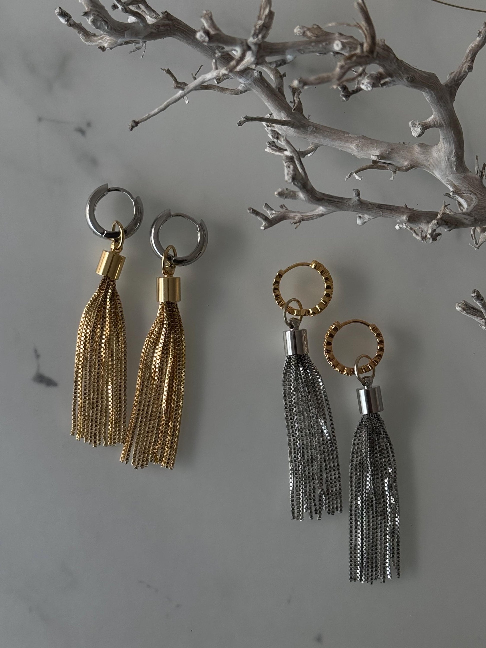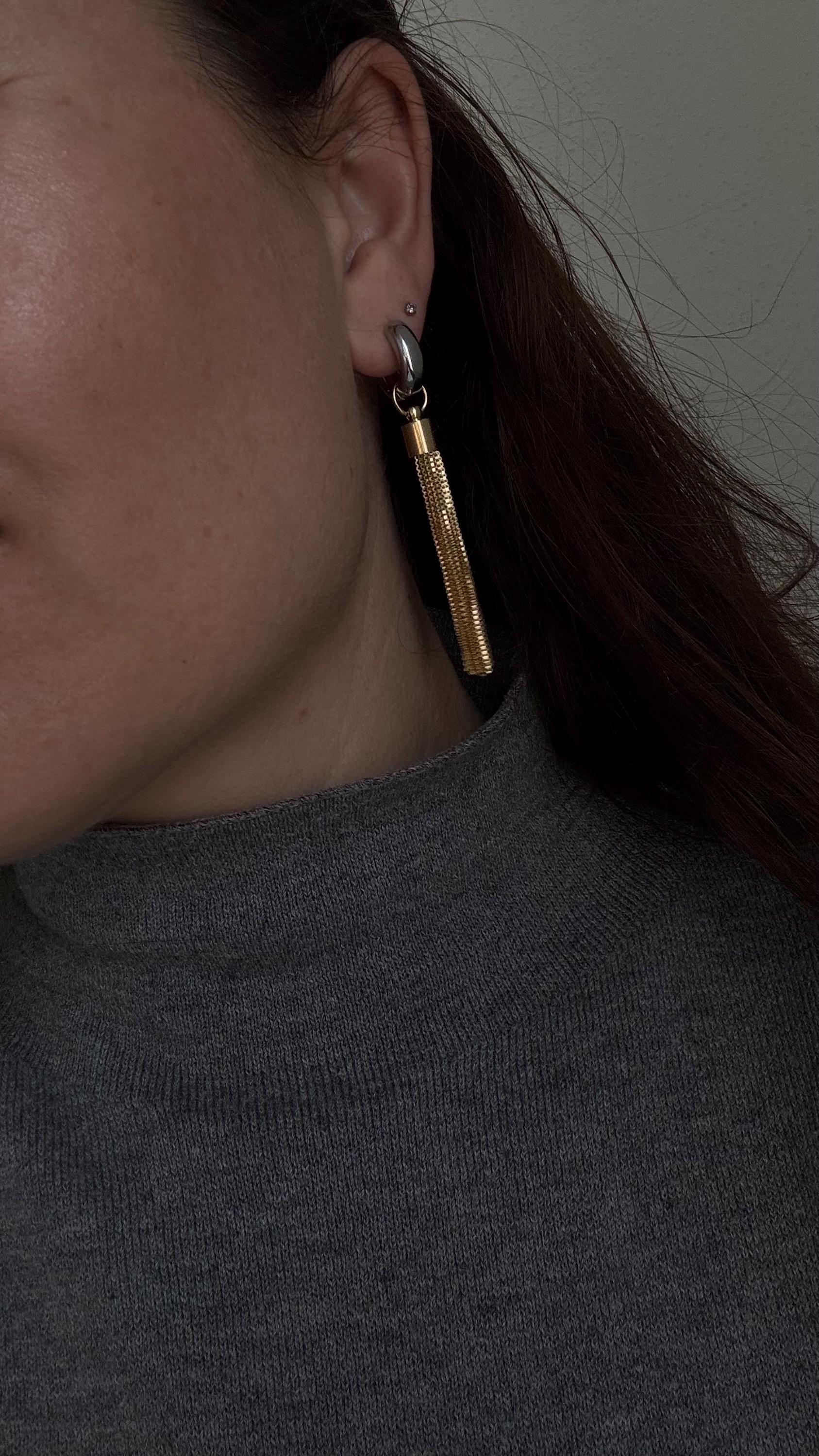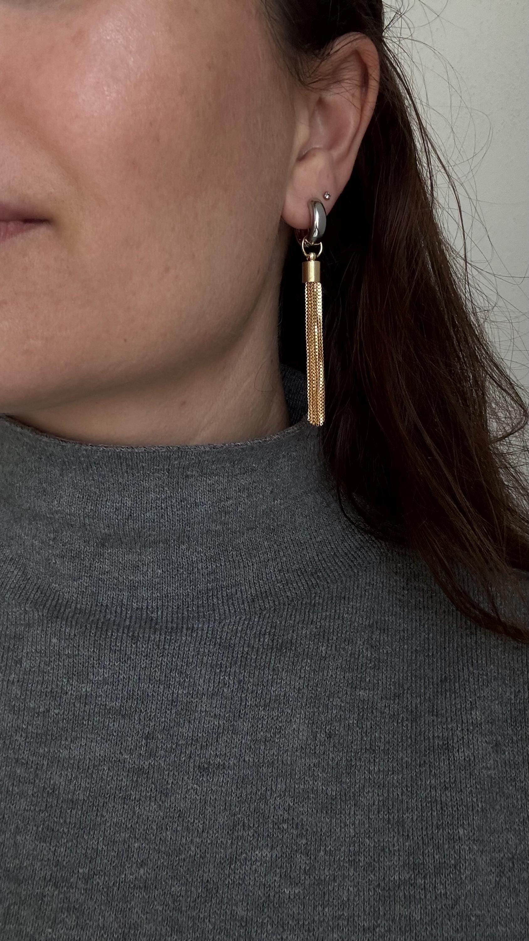 Bicolor Hängeohrringe „Betty“ aus silbernen Creolen und goldenen Quasten