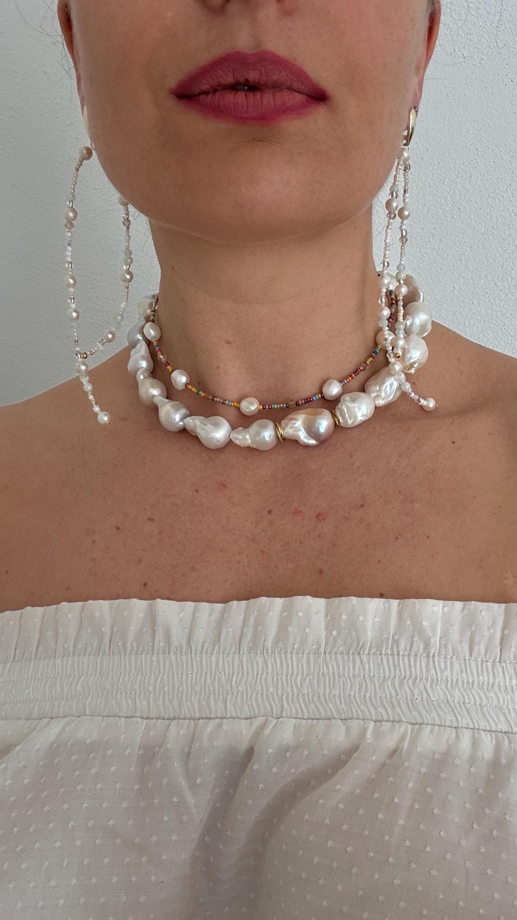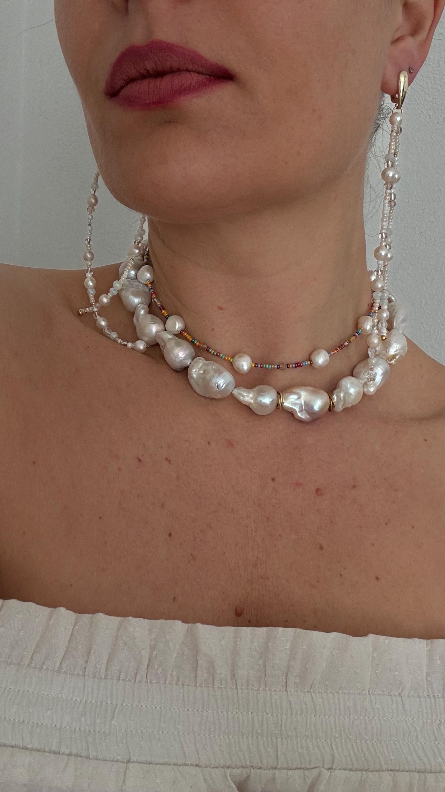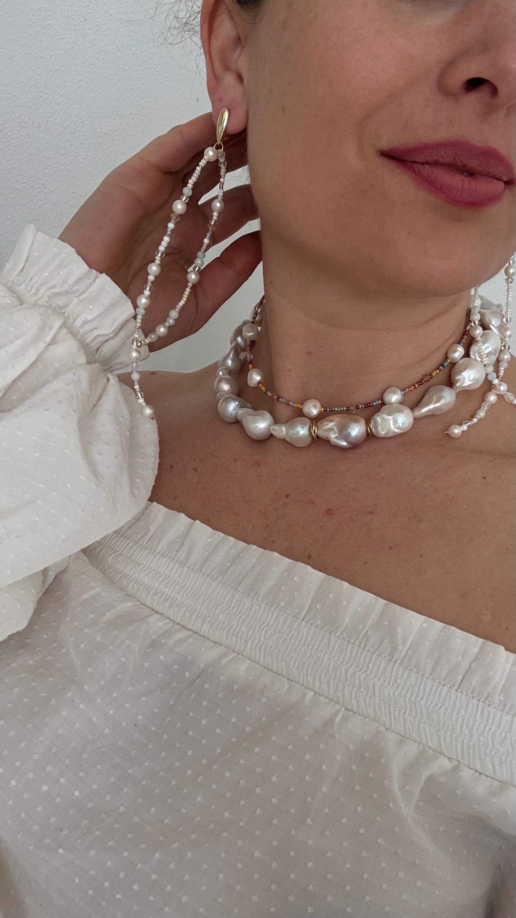 Hängeohrringe „Bride“ aus Süßwasser - und Glasperlen | 18 Karat vergoldet | nickelfrei & wasserfest