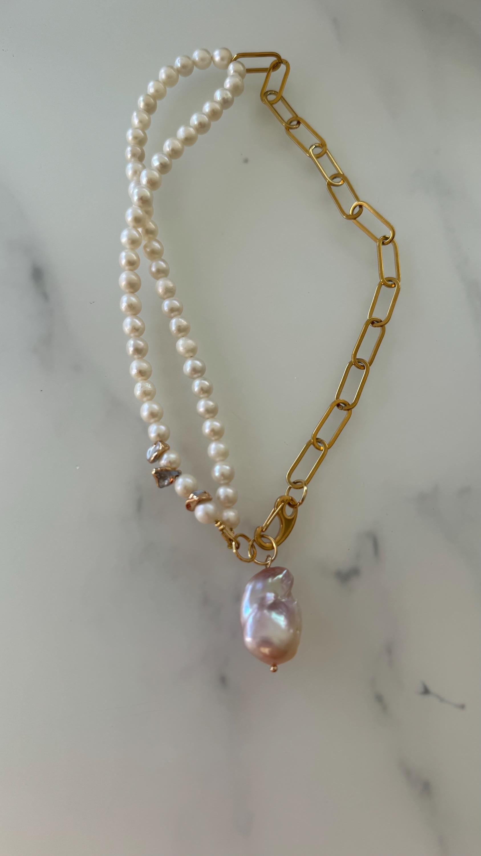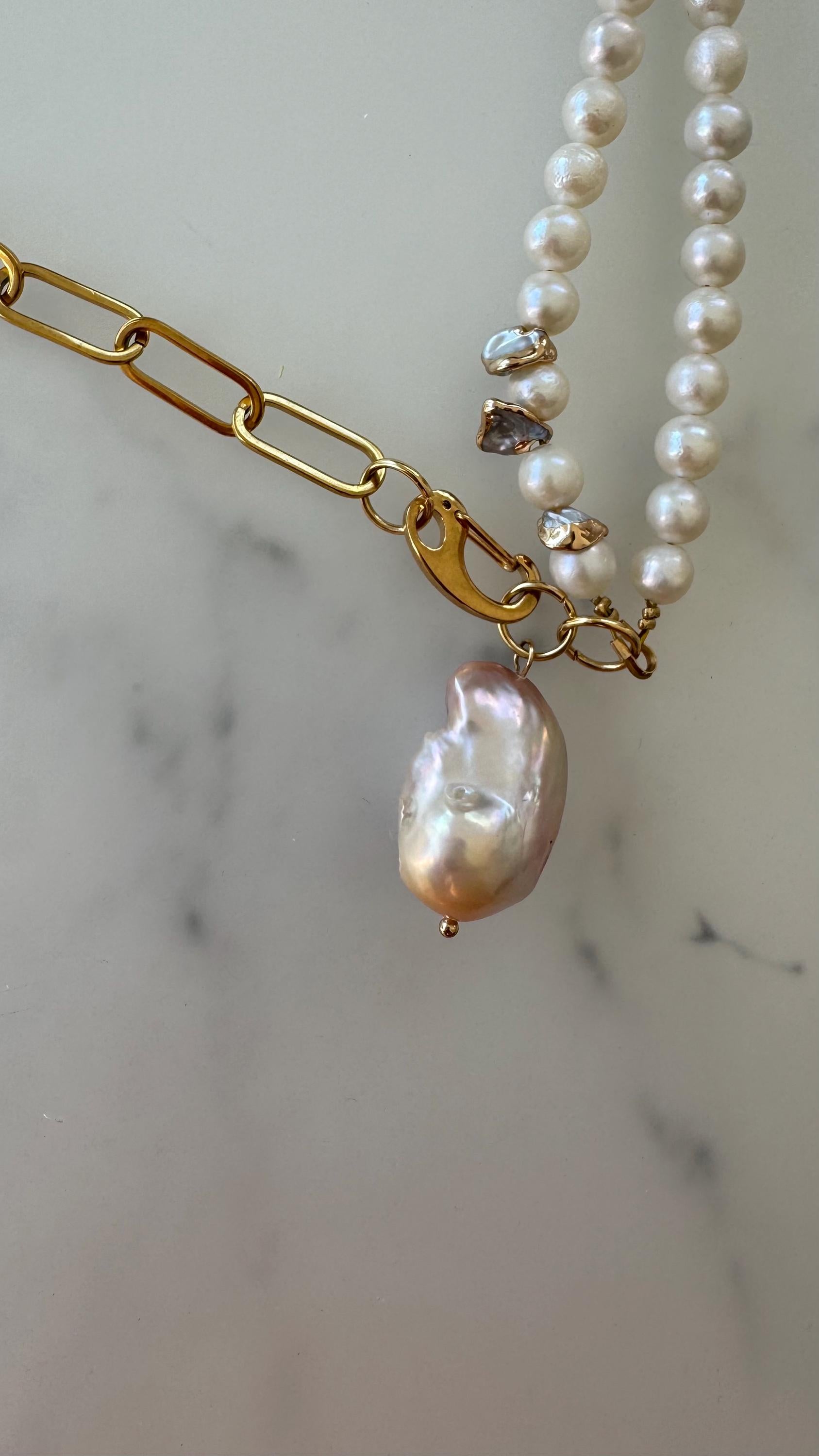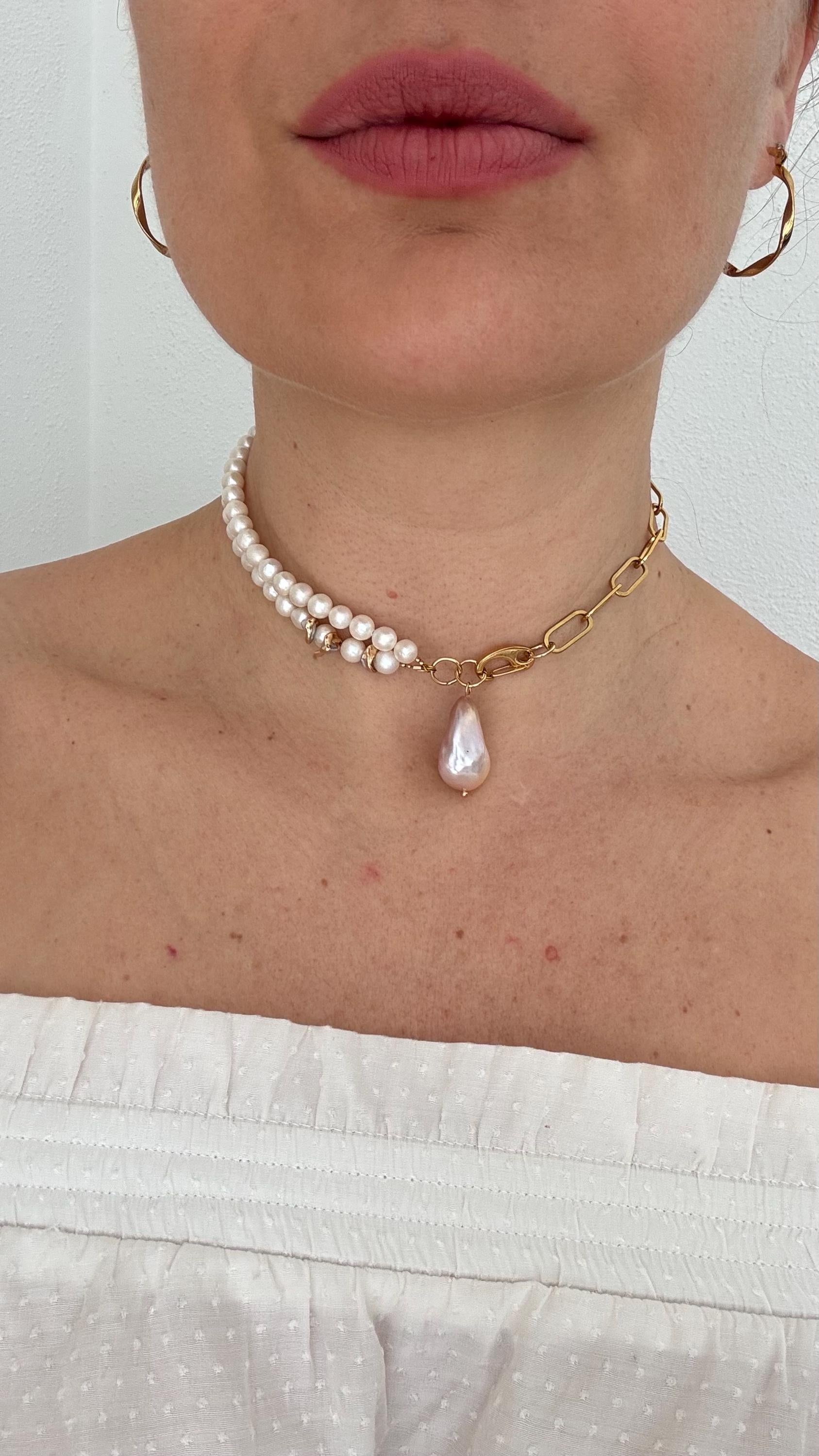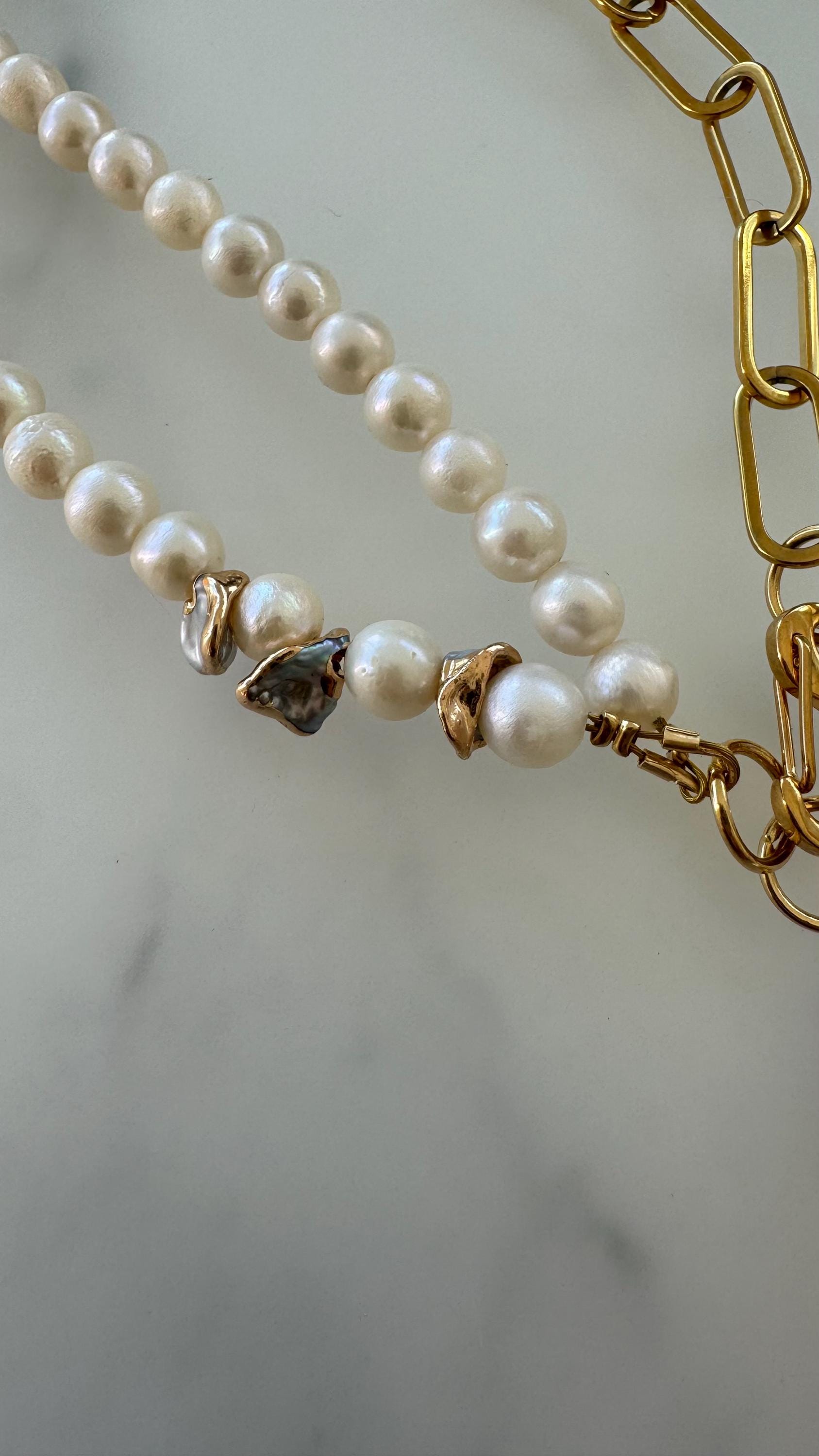 Perlenkette „Monica“ aus Süsswasserperlen & Barockperle | 18 Karat vergoldet | wasserfest
