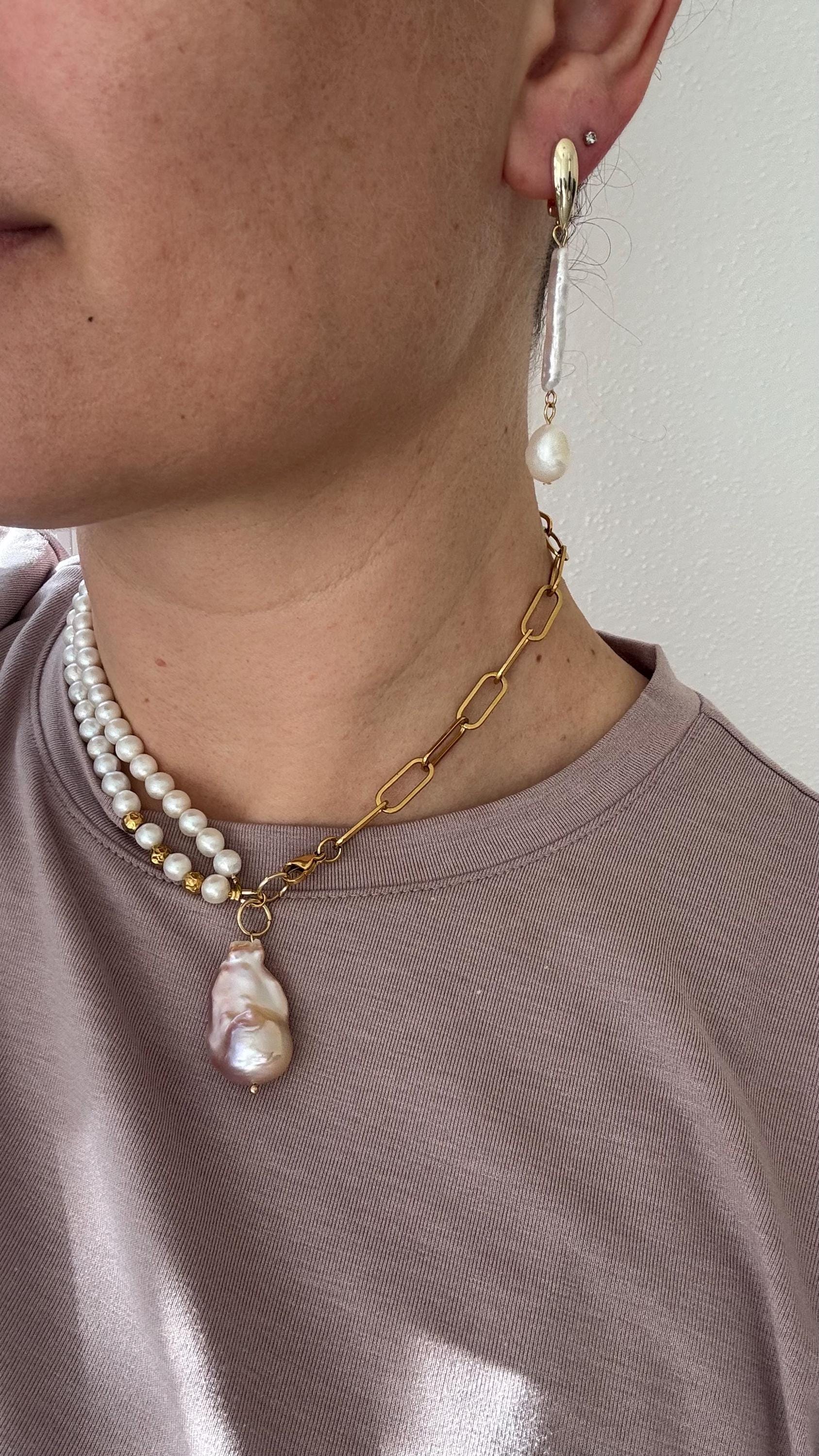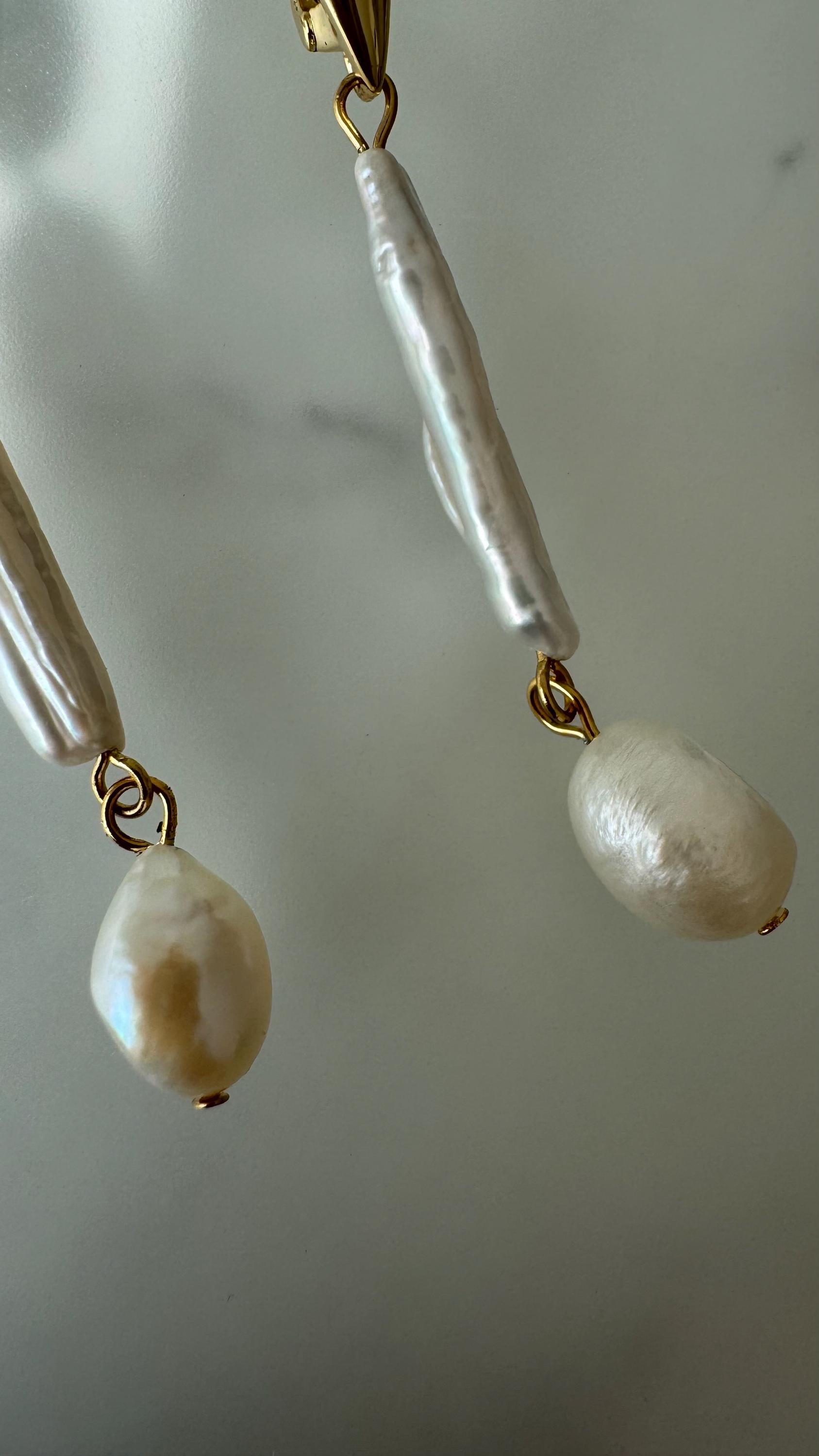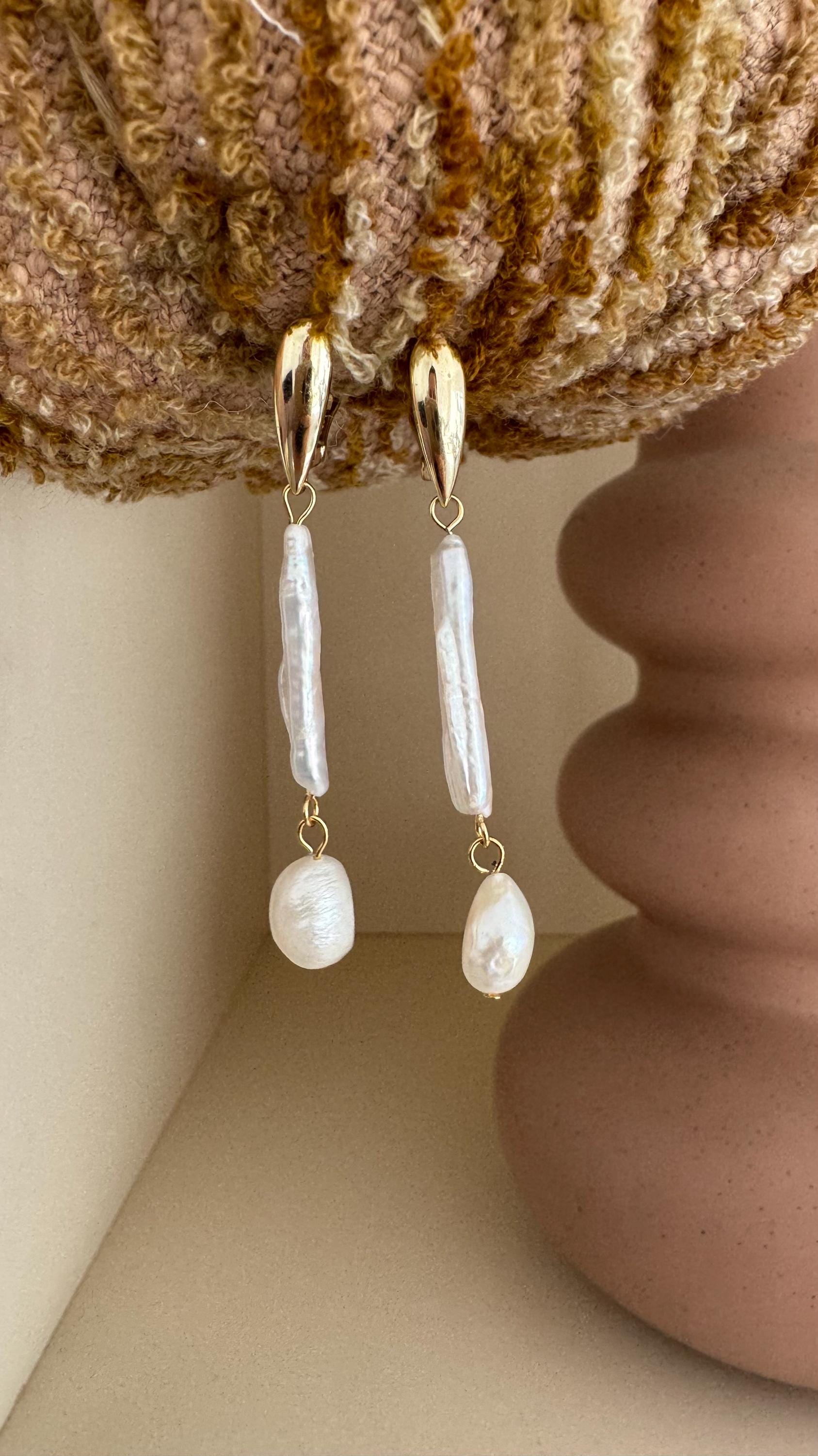 Einzigartige Unikate die aus der Natur entstehen. Echte Süsswasserperlen verzieren die Ohrringe, jede Perle ist anders und gleicht nicht der anderen, wie unser Fingerabdruck. Der Ohrstecker ist 18 Karat vergoldetes 925 echtes Silber. Die Ohrringe sind wasserfest und nickelfrei, allerdings dürfen die Perlen nicht dem Chlor und Salzwasser ausgesetzt werden, sonst verlieren sie ihren Glanz. Die Länge der Ohrringe beträgt 6 cm.