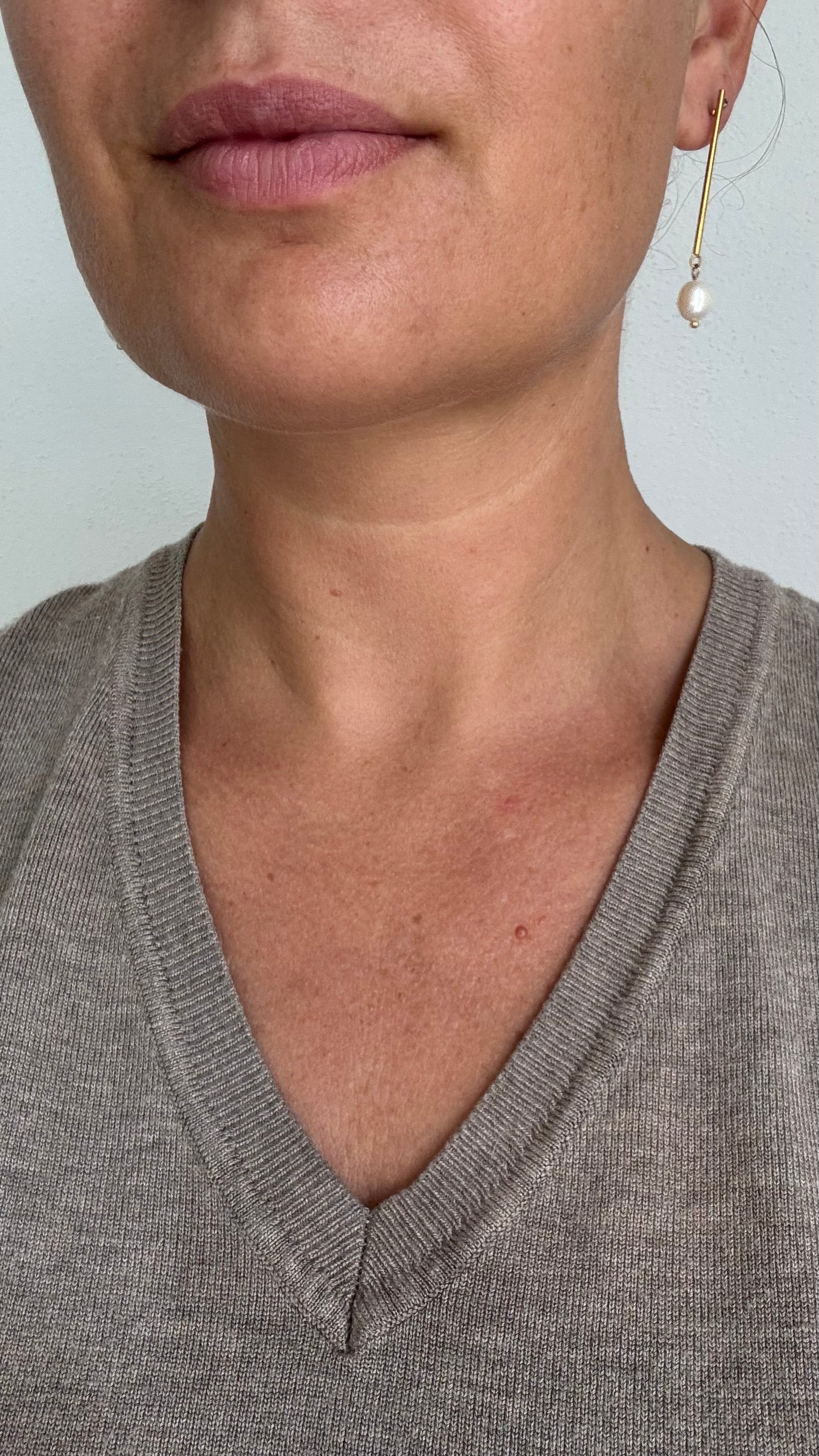 Schlichte aber elegante Ohrringe aus 18 Karat vergoldetem Edelstahl und Süsswasserperle. Die Ohrringe sind nickelfrei und wasserfest.