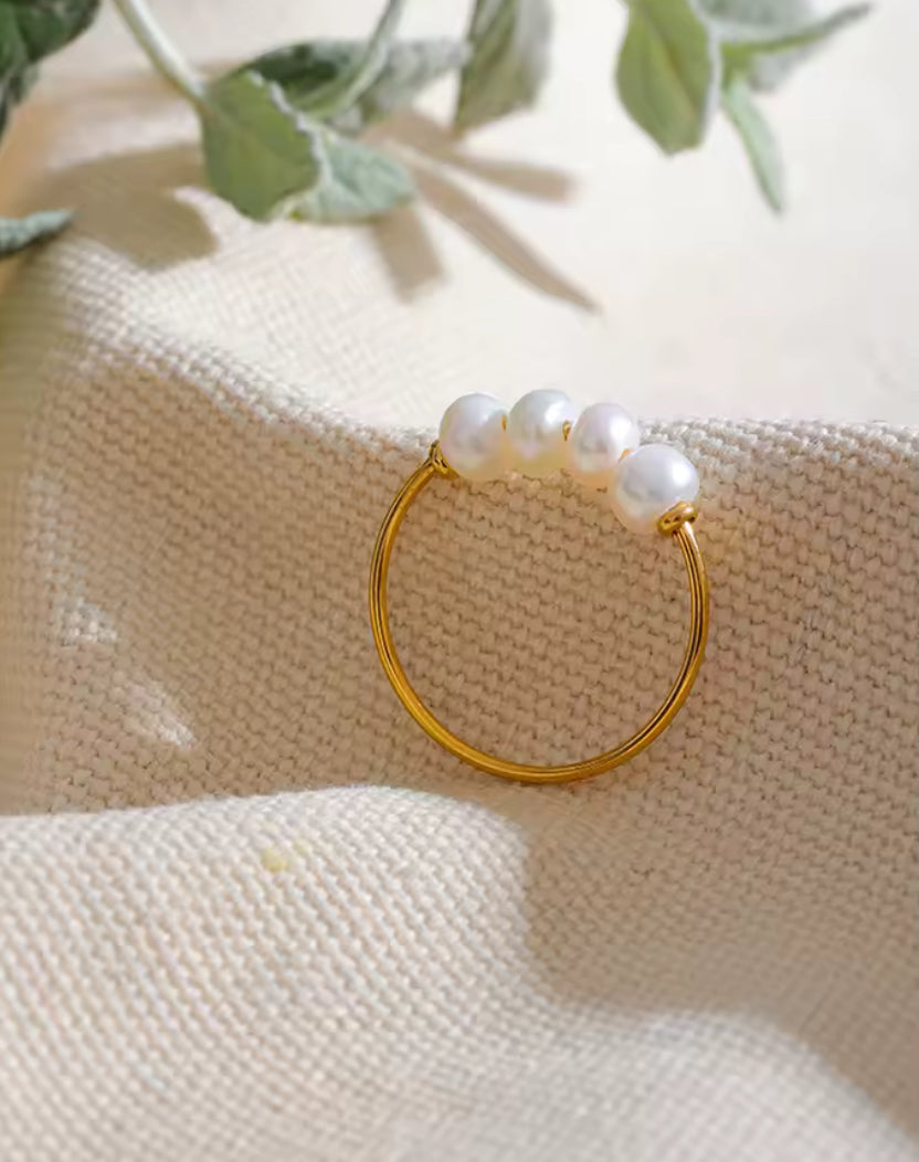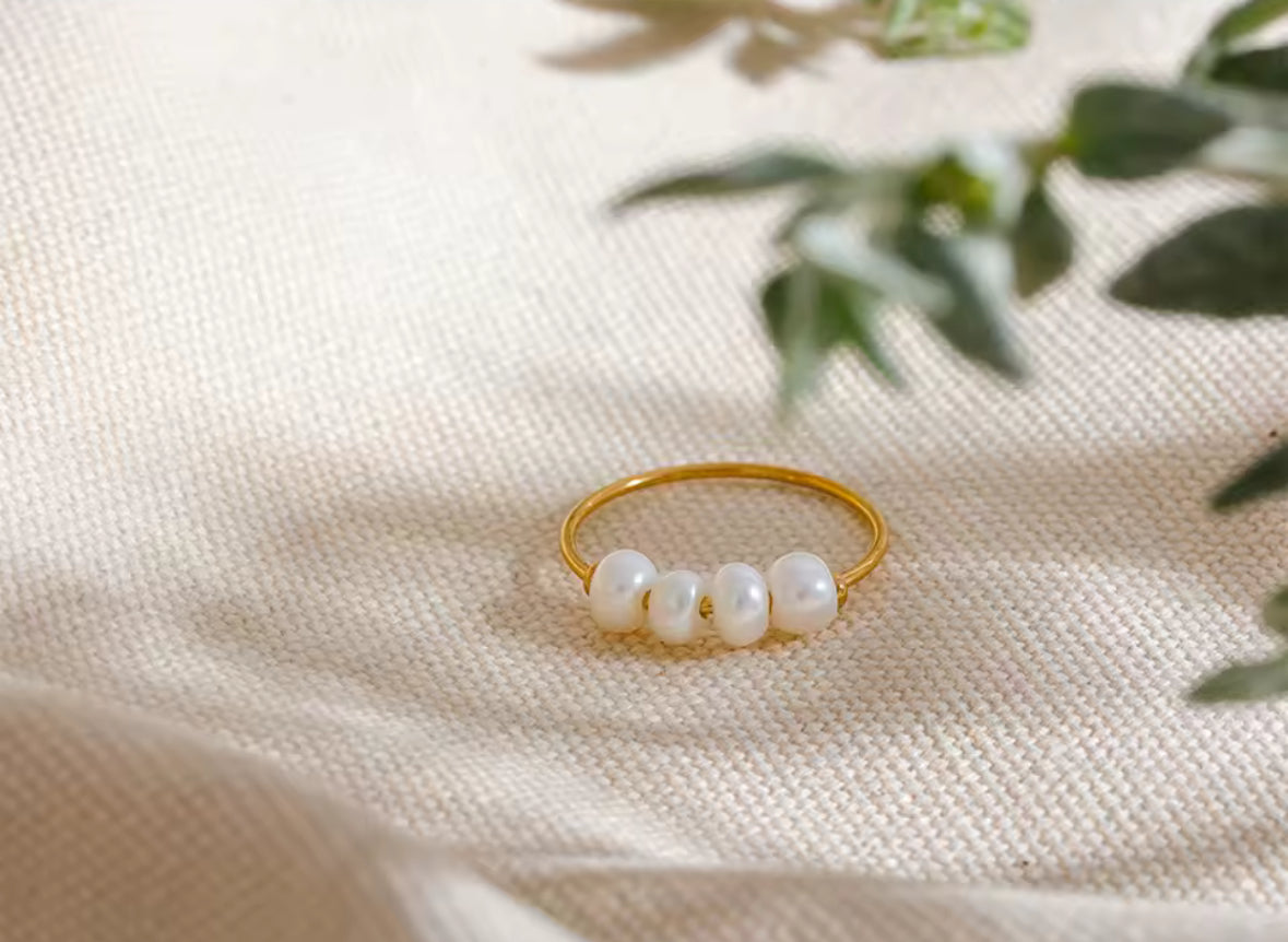 Perlenring mit 4 Süßwasserperlen | hyperalergen und wasserfest | 18 Karat Gold