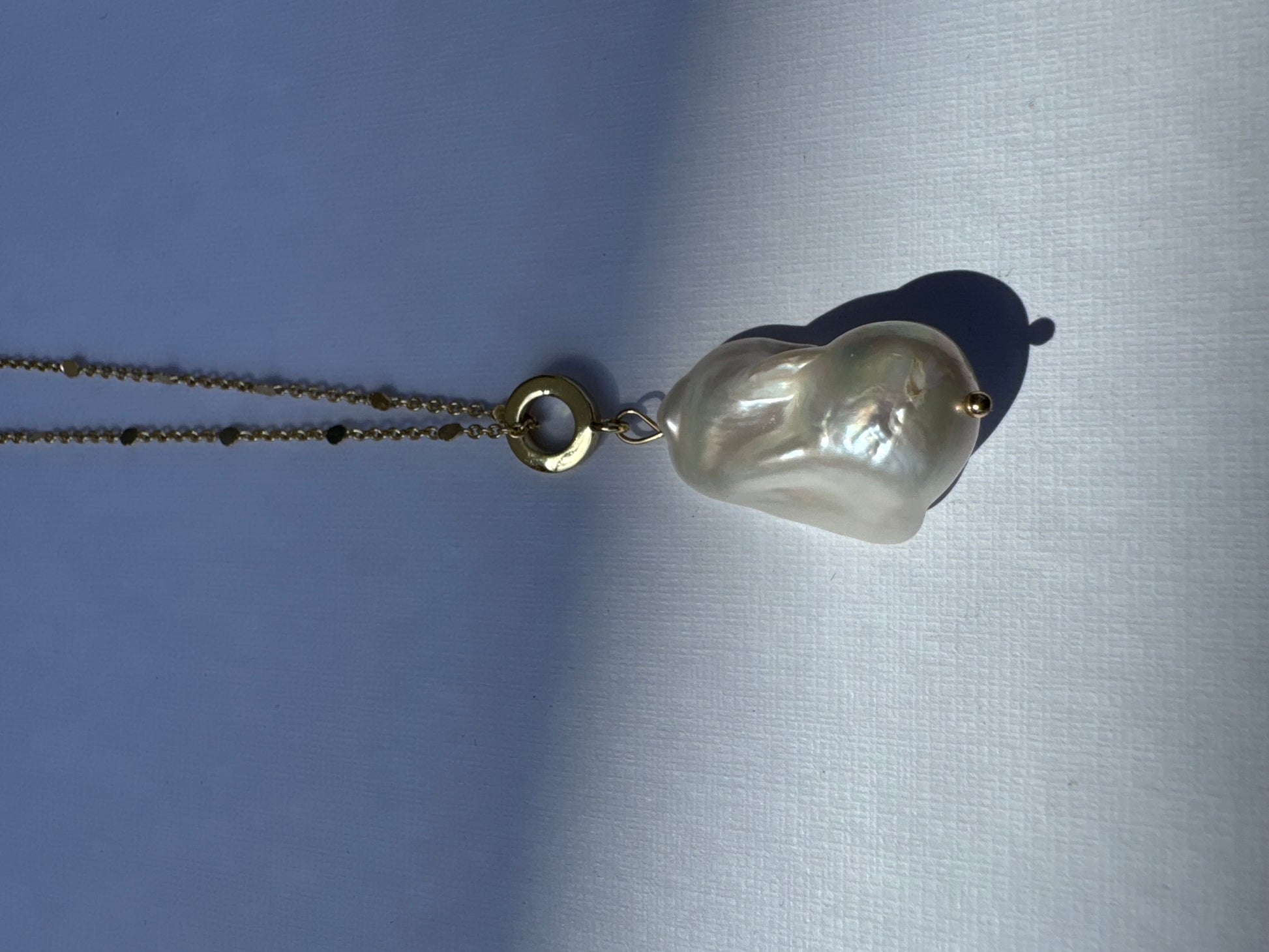 Die Länge der Kette beträgt 65 cm. Alle Goldelemente sind wasserfest und nickelfrei. Allerdings sollte die Perle nicht in Kontakt mit Salzwasser oder Chlor in Kontakt kommen, dadurch könnte sie ihren natürlichen Glanz verlieren.