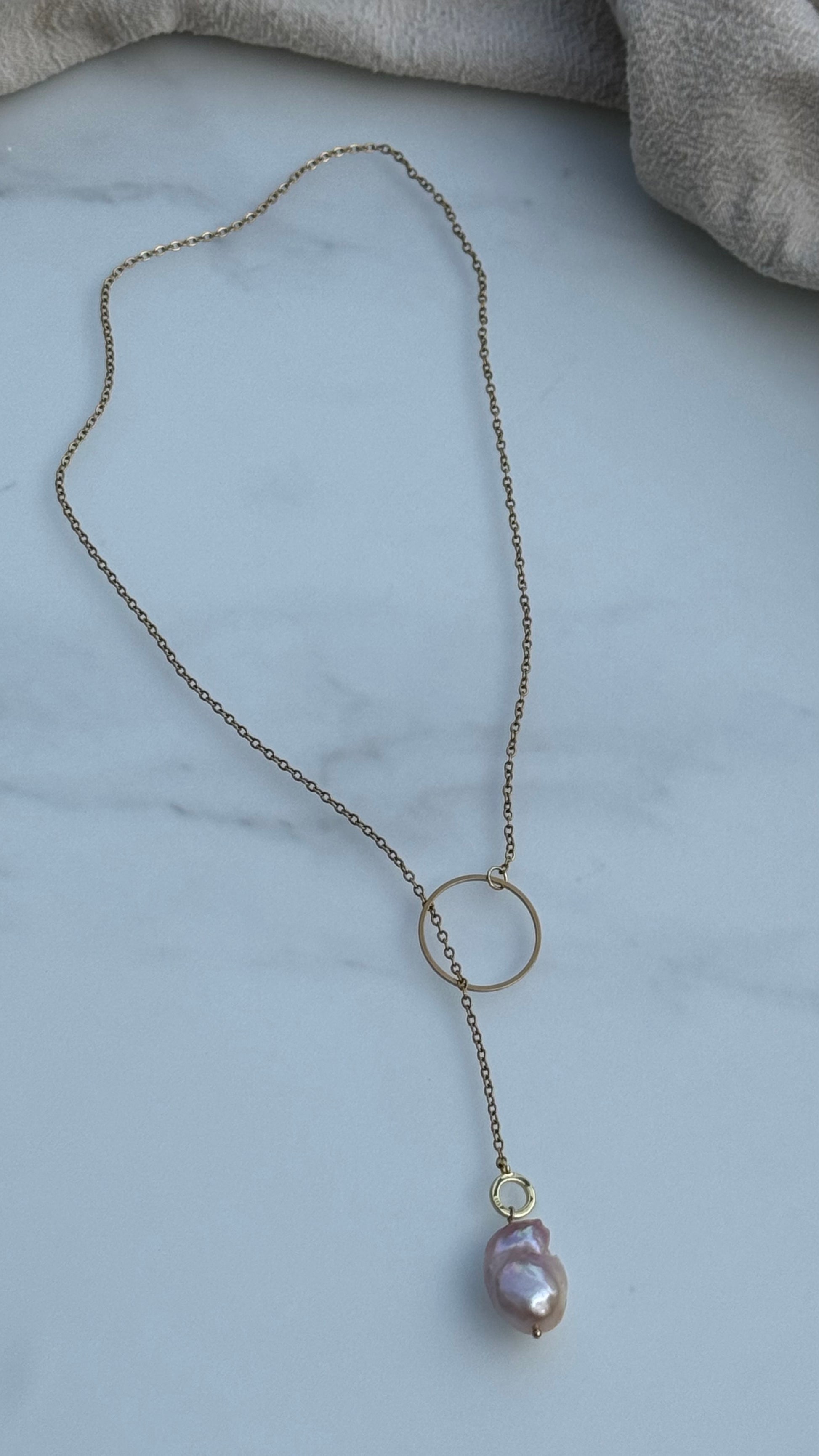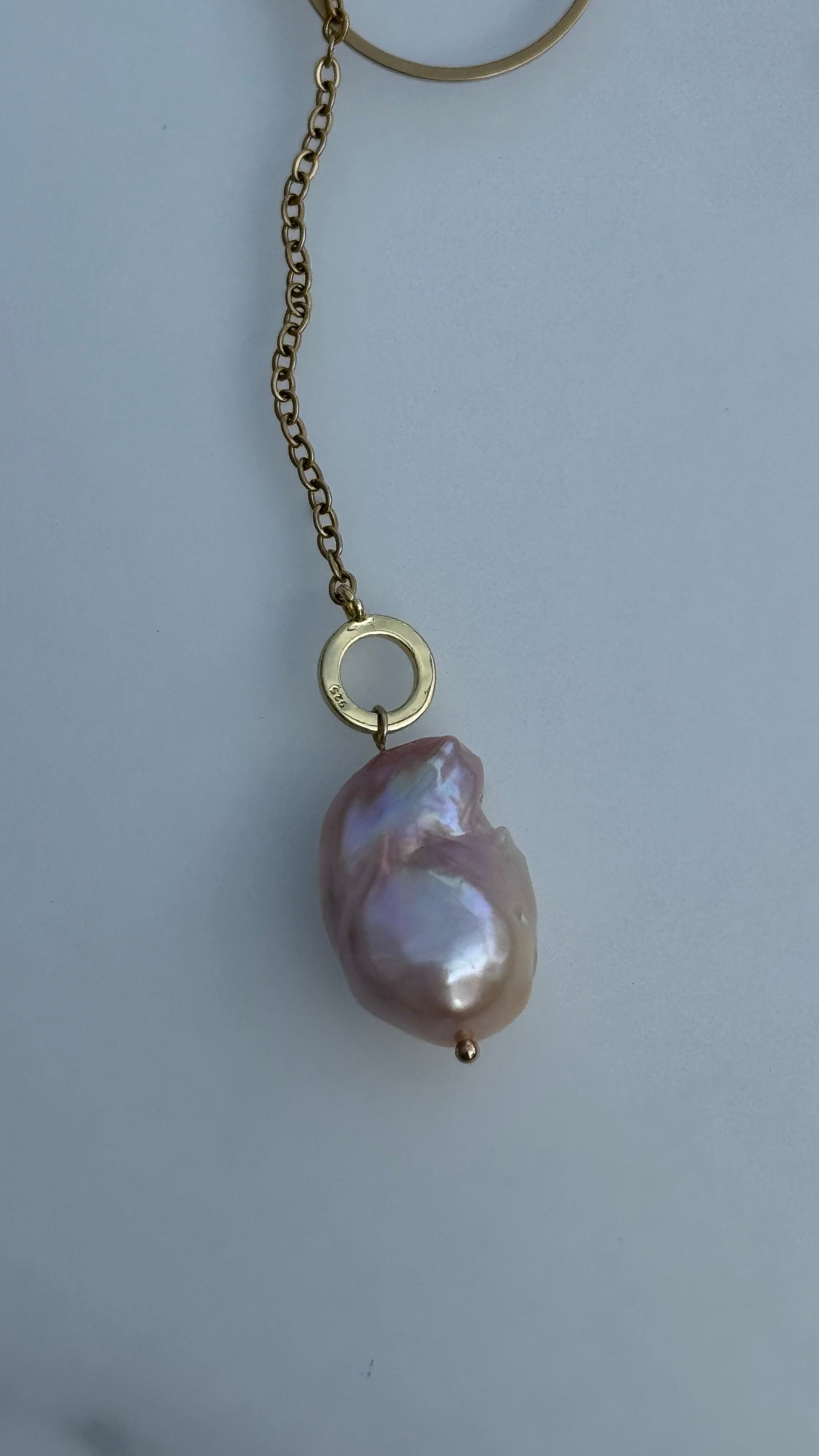 Die Kette ist 18 Karat vergoldet und wasserfest, an der Kette befindet sich eine exklusive und einzigartige Barockperle in rosé.