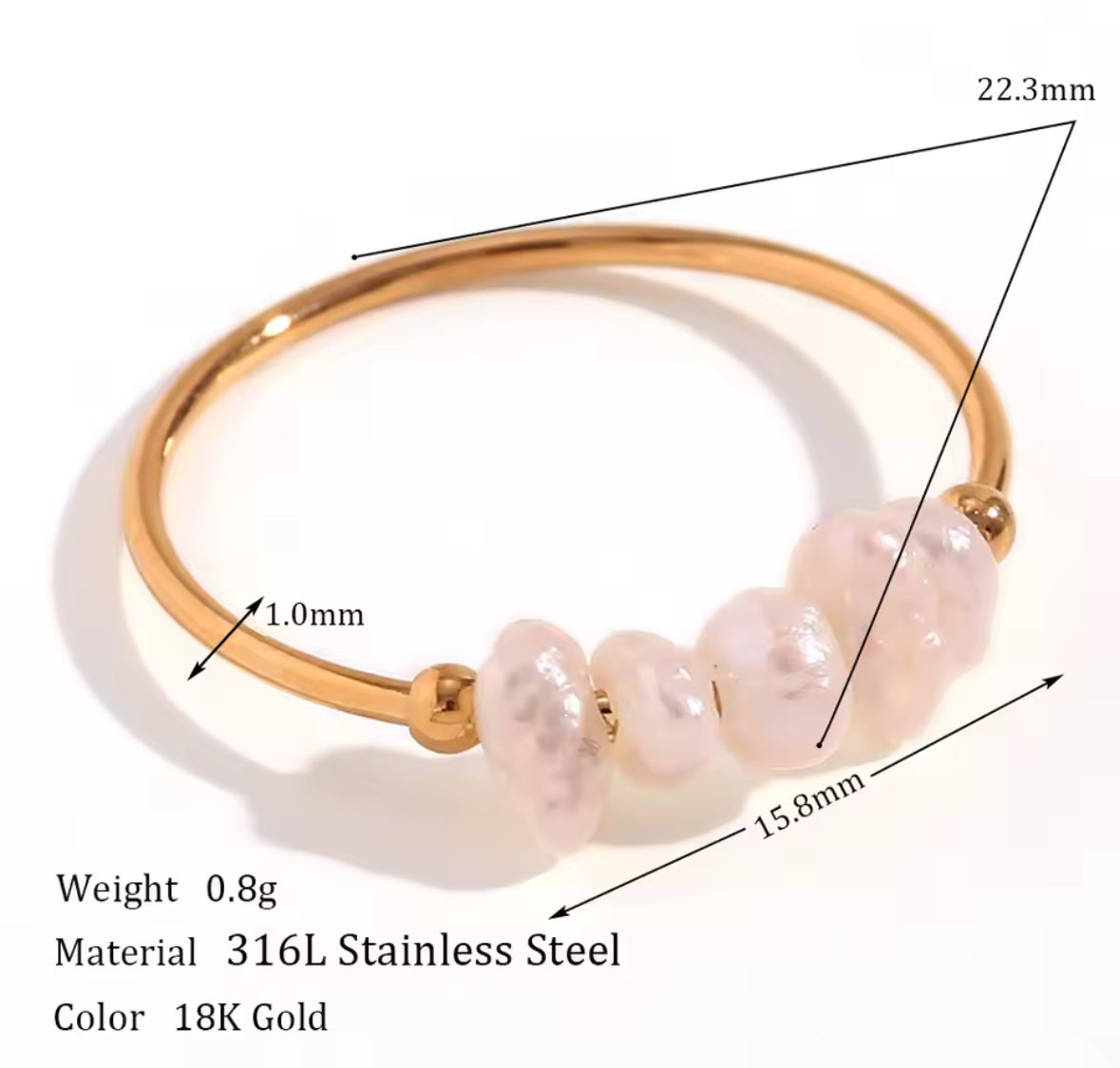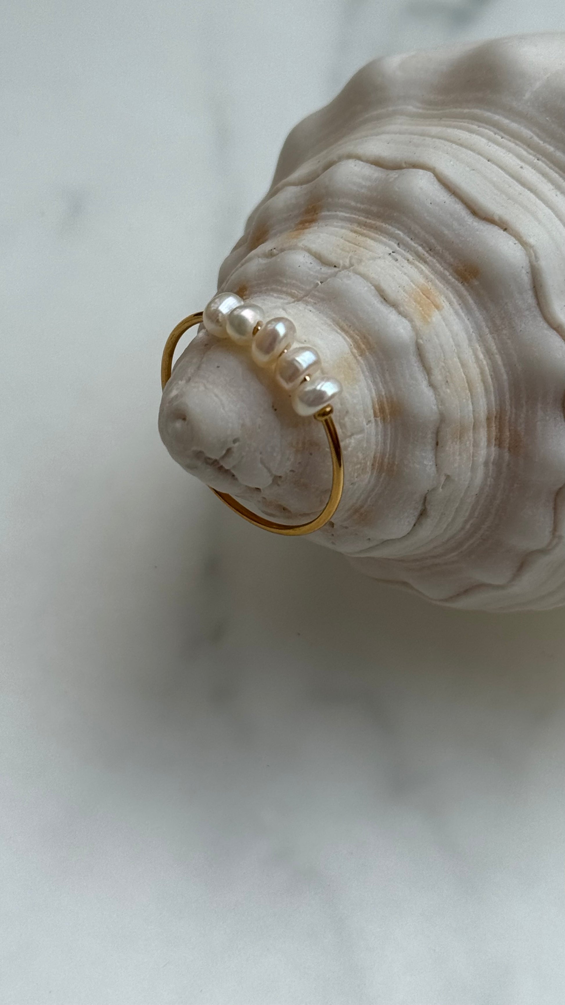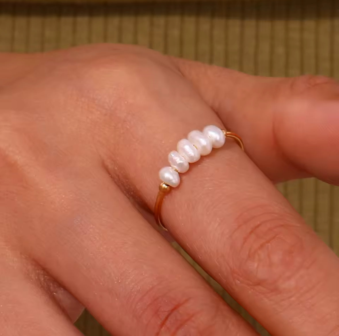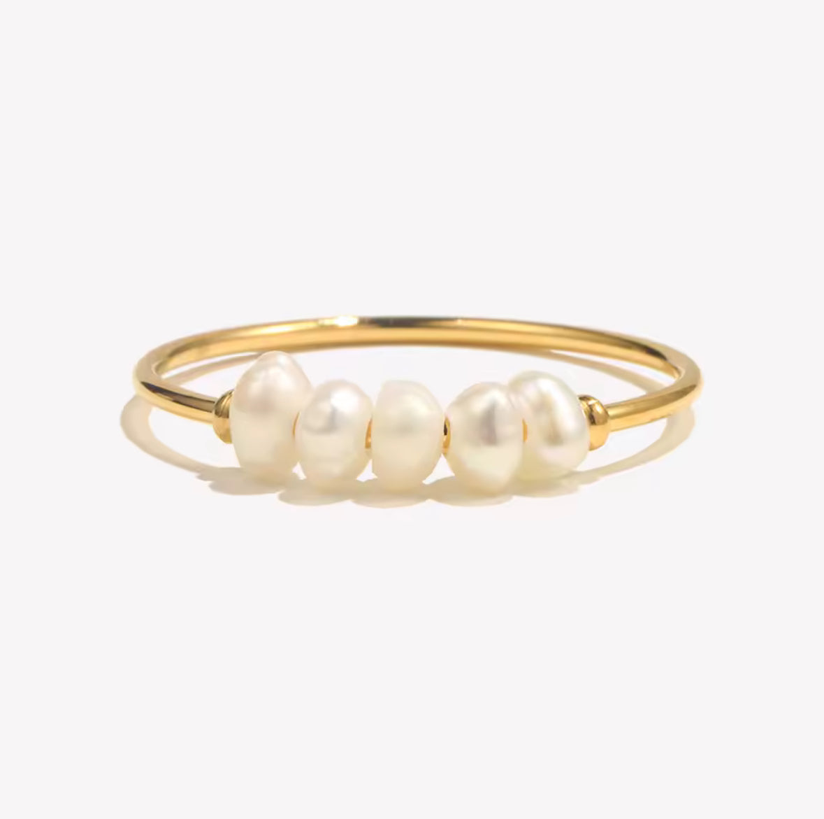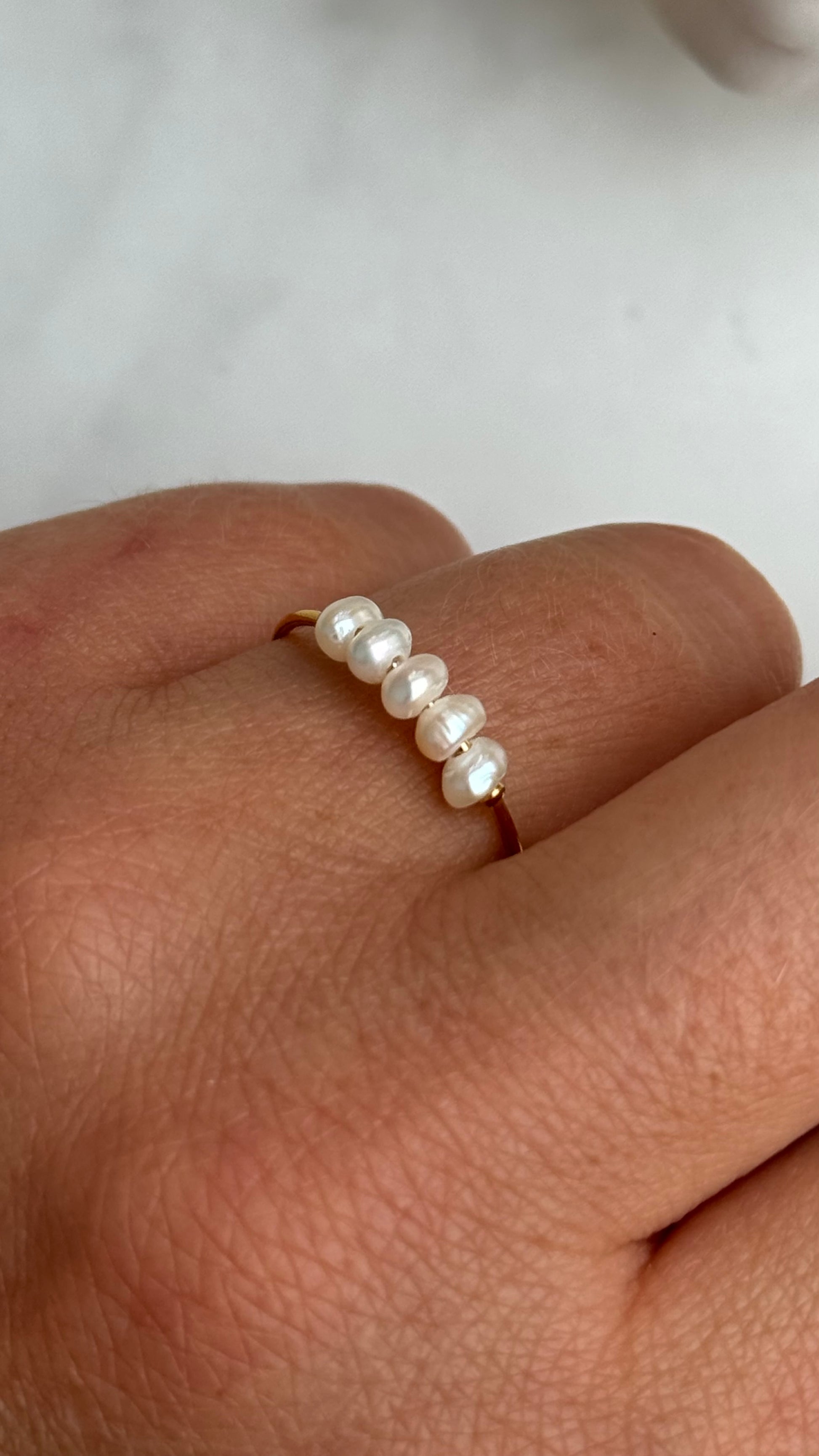 Zarter Perlenring mit 5 Süßwasserperlen | 18 Karat vergoldet | wasserfest